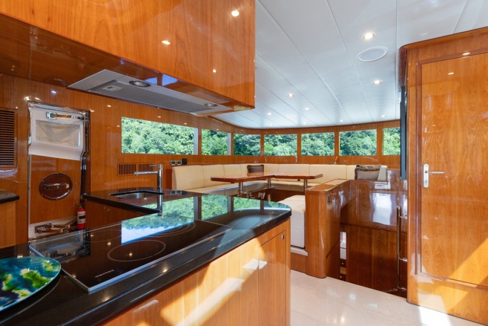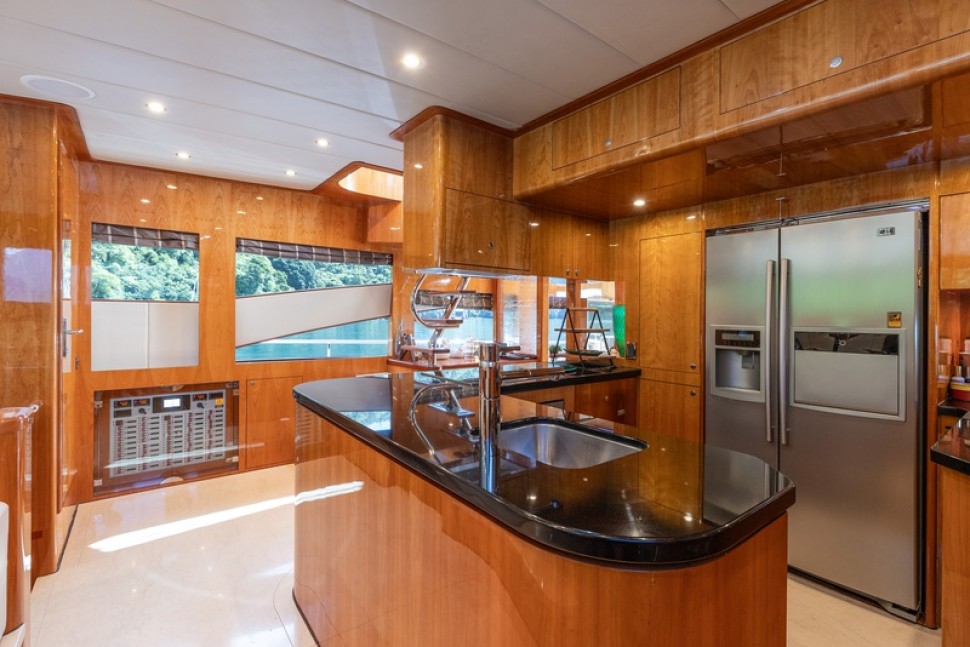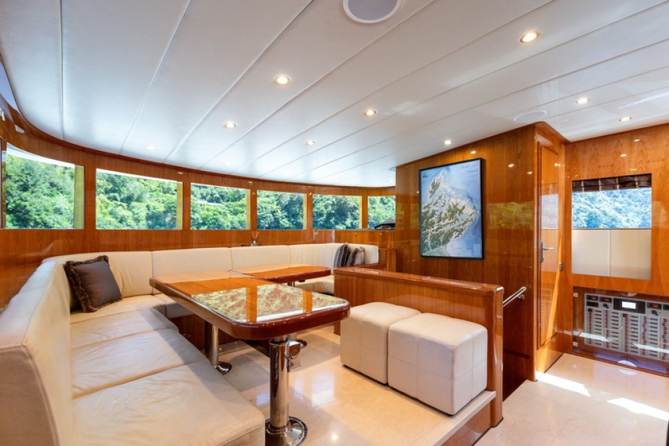 Oversized windows flood the interior with natural light, while the finish and flow throughout reflect her superyacht pedigree.