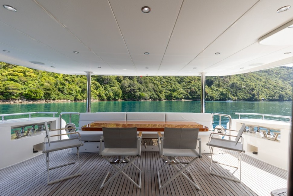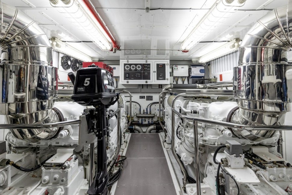 Powered by twin 1500hp MTU diesels, she cruises comfortably at 12 knots and hits 24 knots when needed.