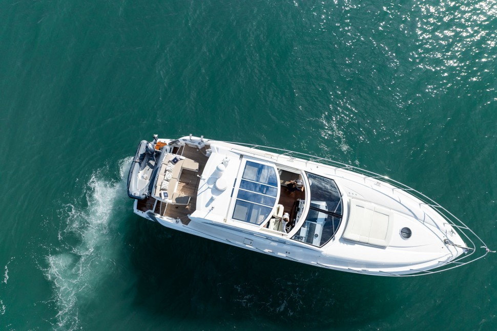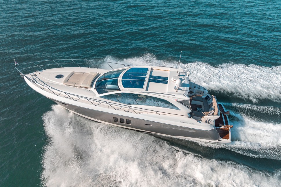 Comfort & Performance: She boasts 3 cabins, 3 heads, and twin IPS 600 R5 435HP engines, cruising comfortably at 20 knots with a top speed of 30 knots. Enjoy stylish entertaining with a large galley fridge, icemaker, sunbeds, and more.