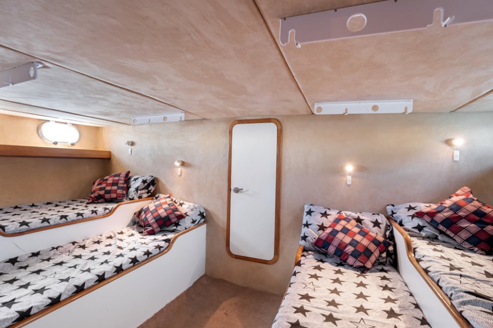 Seattle accommodates up to 8 guests in comfort with three well-appointed cabins. The master cabin is located aft, featuring a double berth and en-suite. Midships, a 4-bunk room provides flexibility for guests or crew, and a forward guest double offers privacy and convenience.