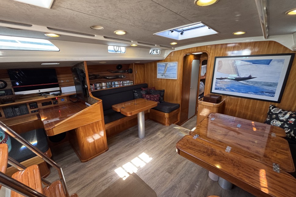 • Extensive Refit: Full bare deck refit, complete paint job (hull, topsides, mast, boom), new running rigging, tested standing rigging, serviced furlers and hydraulics, new vang, new spinnaker, serviced main jib and storm sails, all-new B&G electronics, new tender/outboard, new refrigeration system, lithium batteries, inverter, Iridium & Starlink installed, new squabs, awnings, clears, boom tent, sail cover, flooring, LED lighting, comprehensive spares,VHF, AIS, nav computer, SSB, new alternators, engine hoses, autopilot, serviced watermaker, new anchor chain, immersion suits, , underwater lights, and dive compressor.