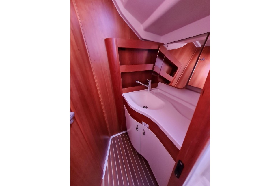 Constructed in composite with a teak deck, she features a carbon Pauger mast with rod rigging and a powerful sail wardrobe, including recently replaced carbon/Technora expedition sails (March 2024). A fin keel with spade rudder and retractable bow thruster provide confident performance under sail and precise handling in tight marinas.