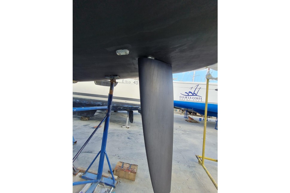 Currently located on the hardstand in Aegina, Greece, Loki has been sanded and is ready for antifouling.