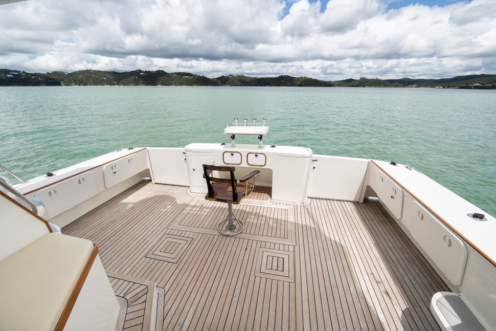 - Walk-around decks, stairs to flybridge, and aft flybridge controls