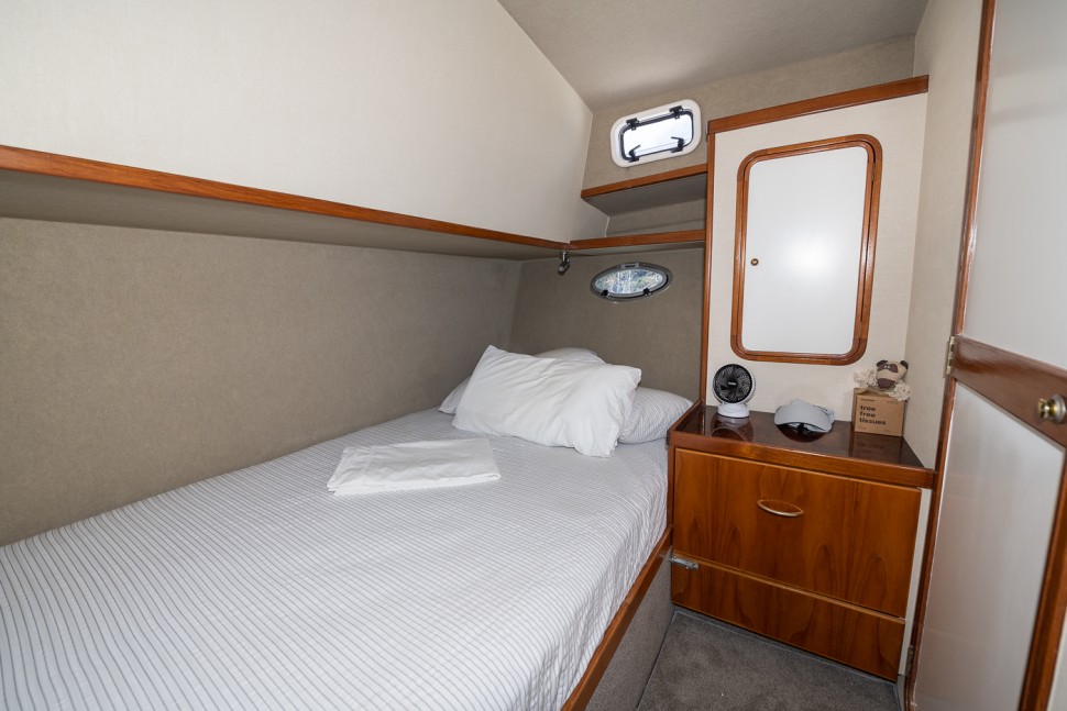 - Twin Cummins QSB 6.7s (2021) – 20.5-knot cruise, 29-knot top end