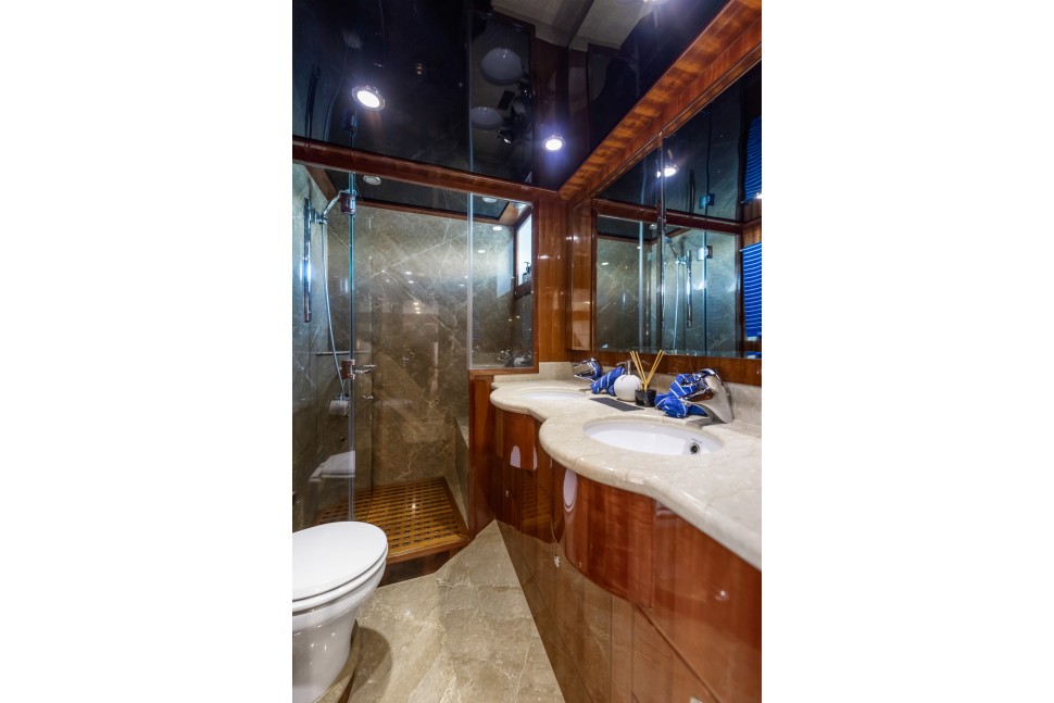 - Five beautifully appointed cabins of three forward and two aft giving you capacity to sleep 12
