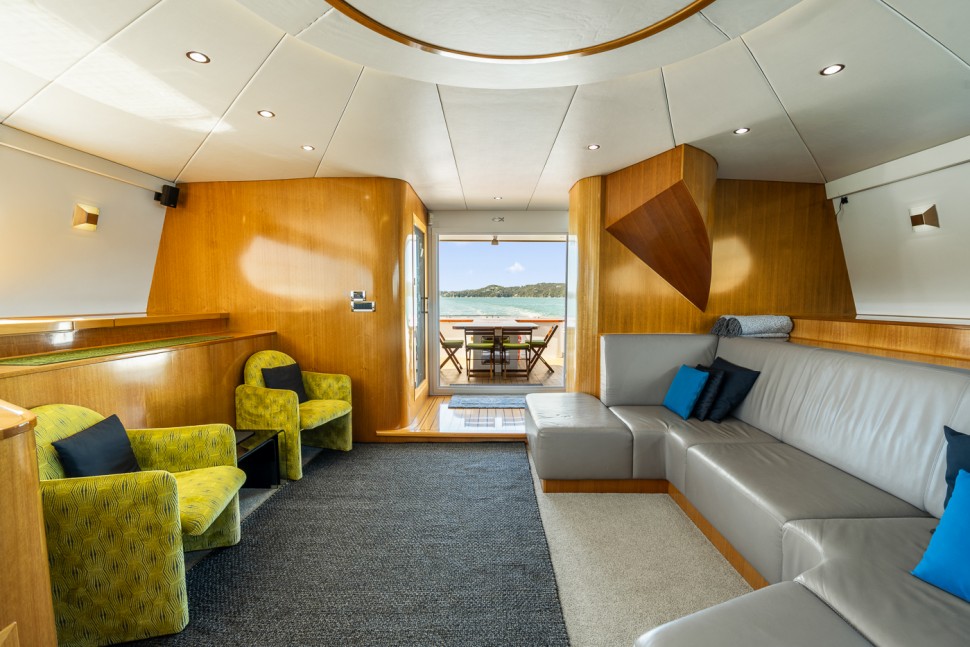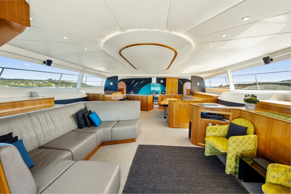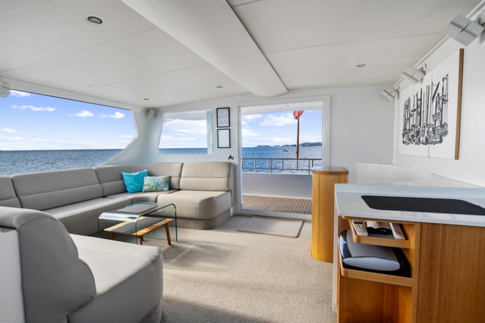 Designed by Steve Ekman and proudly built in New Zealand by Fiberglass Concepts, Bucket List is a 75 ft power catamaran that delivers the perfect balance of comfort, performance, and commercial capability. Four spacious decks, generous living zones, and a commanding upper helm make her ideal for entertaining, long-range cruising, or charter operation.