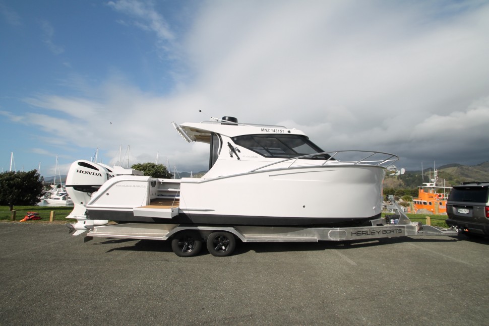 The perfect blend of performance, reliability, and versatility. This stunning vessel is powered by twin, as new, economical 200hp Honda outboard engines (Total time run - 50 hours), She delivers an economical 20kt cruise, sprint speed of 42 knots, soft ride and stability. This makes it ideal for commercial applications, coastal cruising or overnight adventures.
