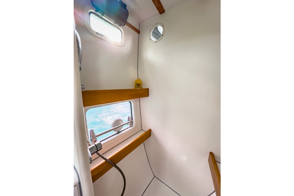 - Rigid bimini with water catcher, 600W solar panels, AIS, two fridges, and one freezer