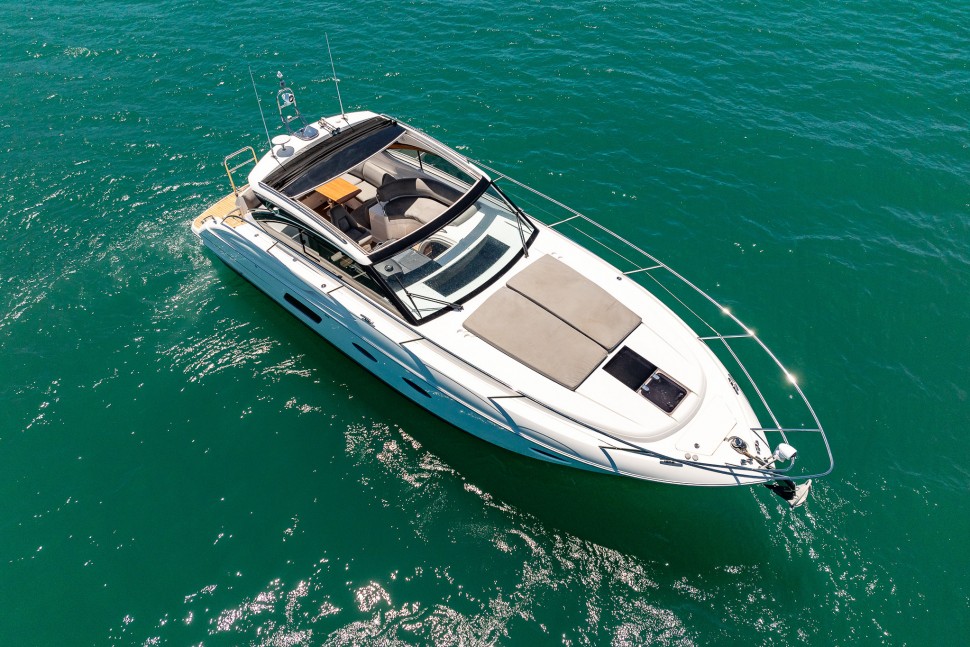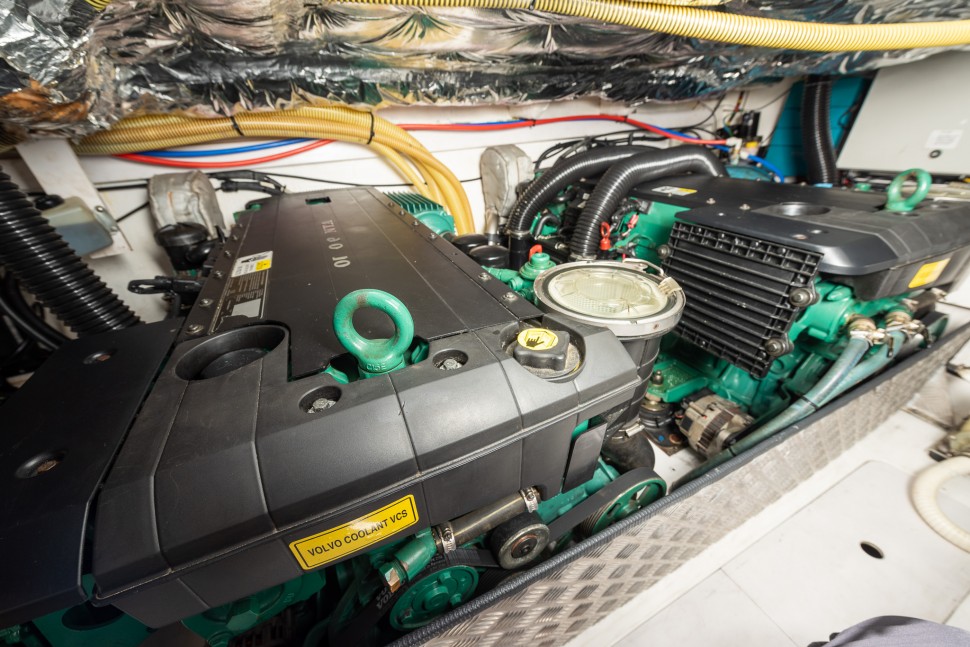 Built in 2013 but only first launched in 2016 she impresses both inside and out with plenty of speed on the water. The slick designed hull coupled with twin Volvo 330hp engines will have you feeling rapid acceleration out of the hole and a smooth transition onto the plane. Along with the Raymarine electronics suite, not to be missed and highly user friendly is the joystick control making manoeuvrability a dream for captain and crew when docking.