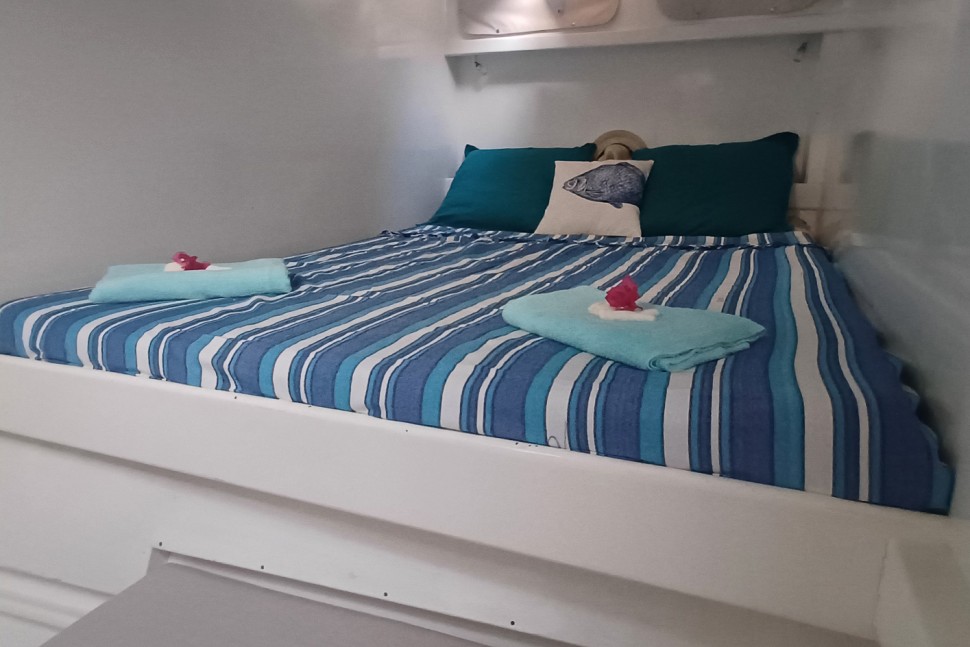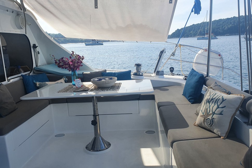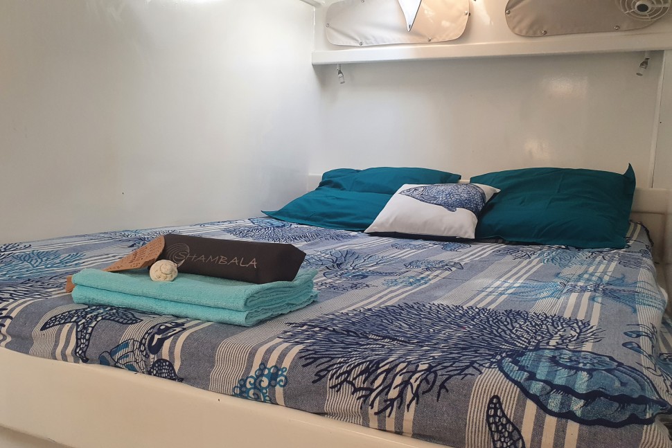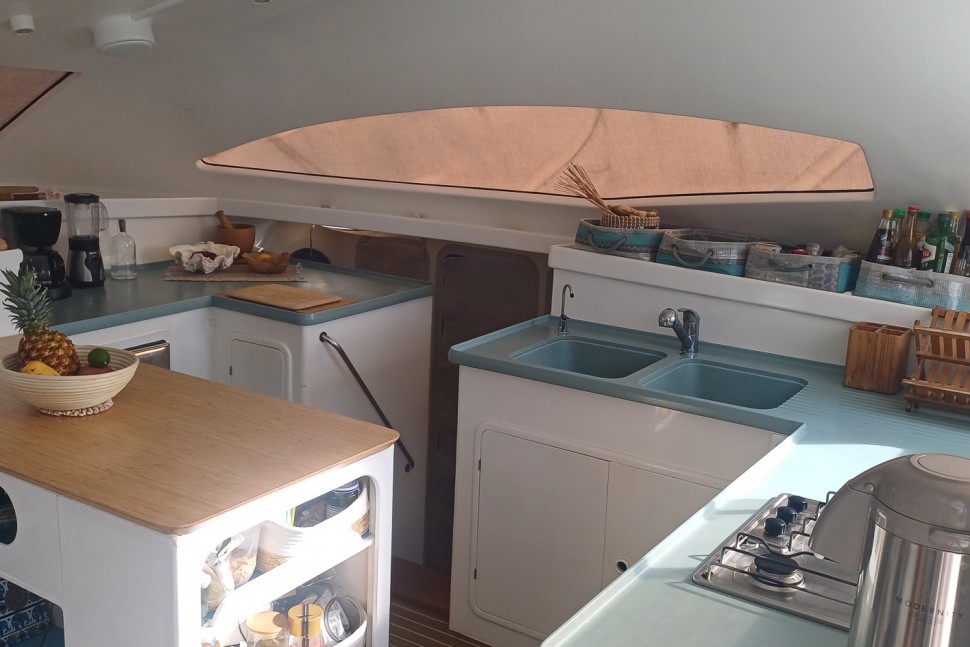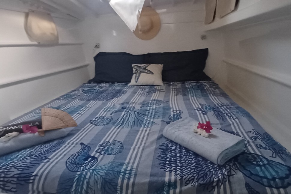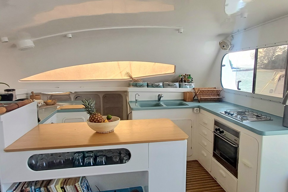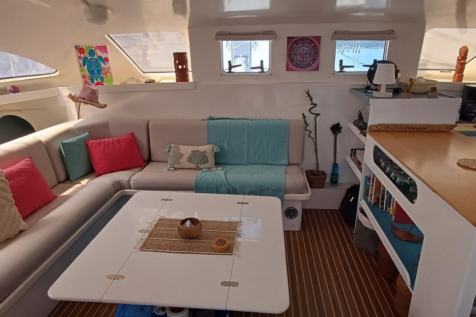 Built to sail, not to impress. SHAMBALA is a 2002 Punch 1500 LC—a design from Multicap Caraïbes that was engineered for cruisers who understand that capability outlasts flash. At 14.90 metres with an 8.10-metre beam and 1.40-metre draft, she's proven bluewater design from architects Mortain-Mavrikios who didn't overthink it: the shallow draft gets you into anchorages most cruisers can only dream of, the catamaran hull gives you real stability, and the layout works because it was built for people who actually live aboard.