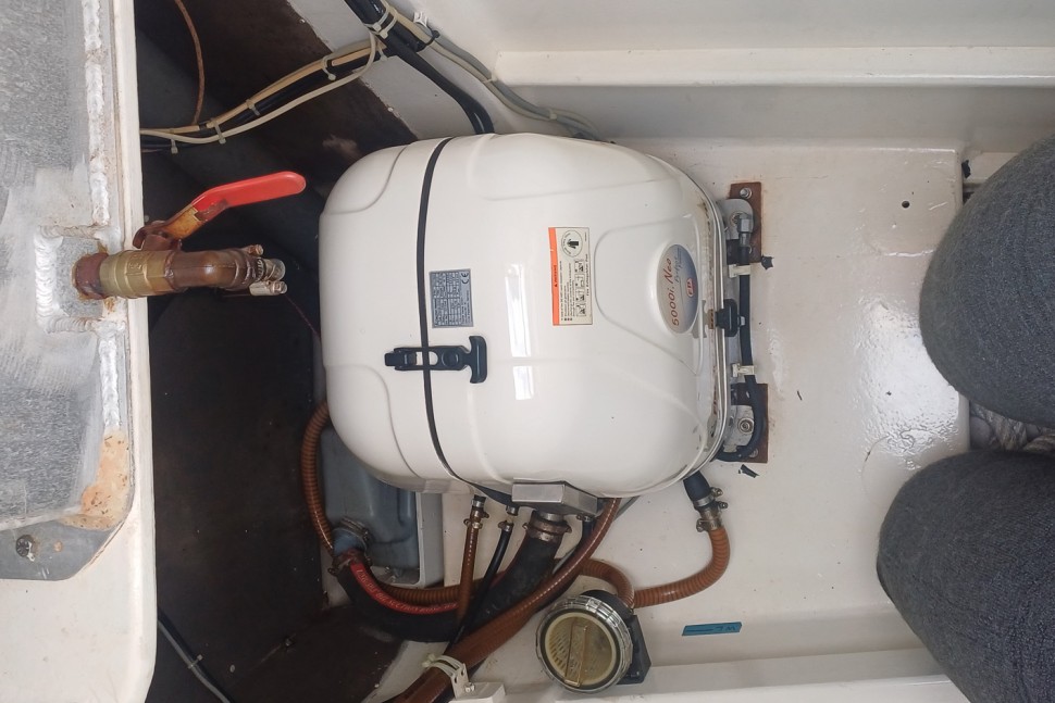 Her current owner has had her since 2016 and clearly knows what he's doing. Recent comprehensive refits in 2018 and 2024 weren't cosmetic exercises—they were the work of someone who respects the boat. Twin Volvo D2 55-hp diesels with updated Saildrives, modern electronics, and fresh carbon sails from North Sails (68m² main, 80m² furling gennaker from 2020) mean she sails efficiently. The systems work: 60 L/h watermaker, 600-litre water and fuel capacity, lithium battery bank with solar array, and a low-hour Fischer Panda generator for the stuff that matters.