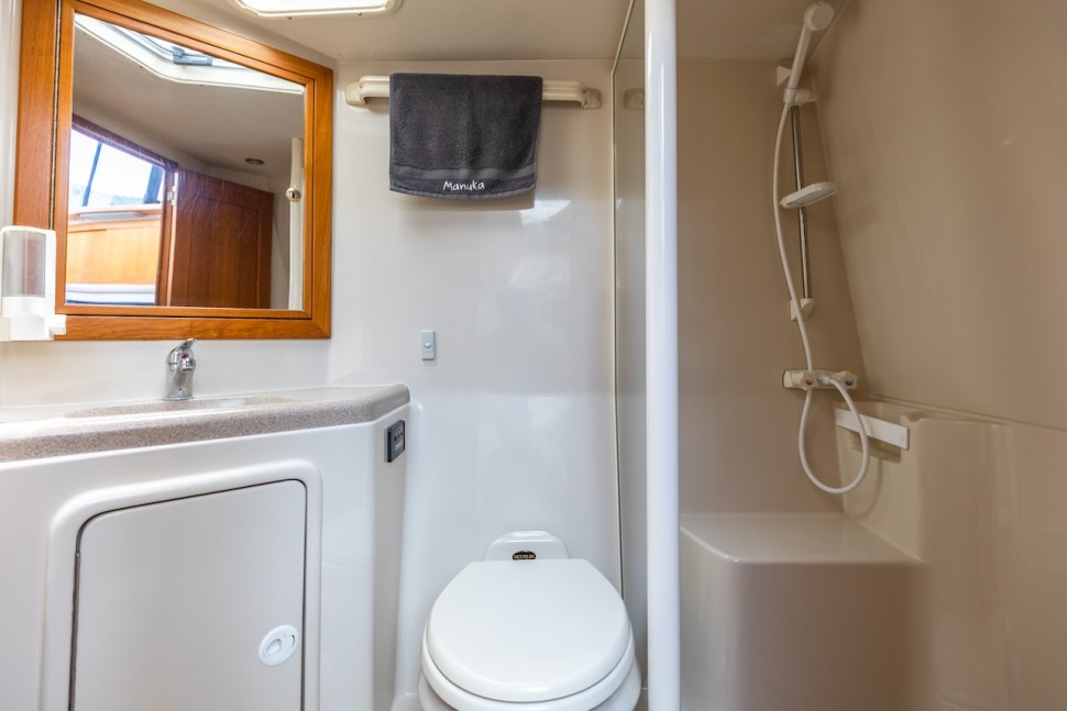 Launched in 2000, Manuka, is a well-maintained Riviera 34, renowned for its exceptional seakeeping abilities and all-glass construction. Powered by twin Cummins 270HP diesel engines, she cruises effortlessly and economically at 14 knots, with a top speed of 25 knots. Whether cruising comfortably at 10 knots or showing her full potential, this vessel delivers both performance and efficiency.