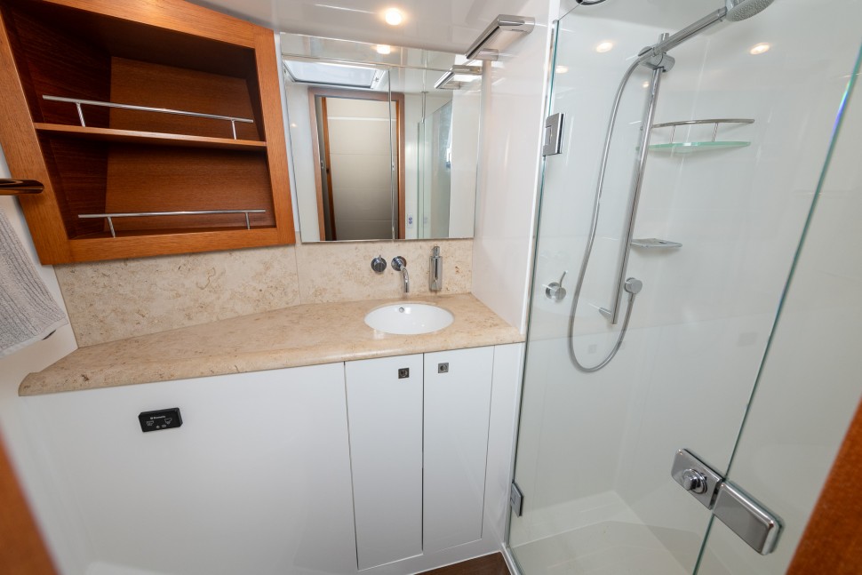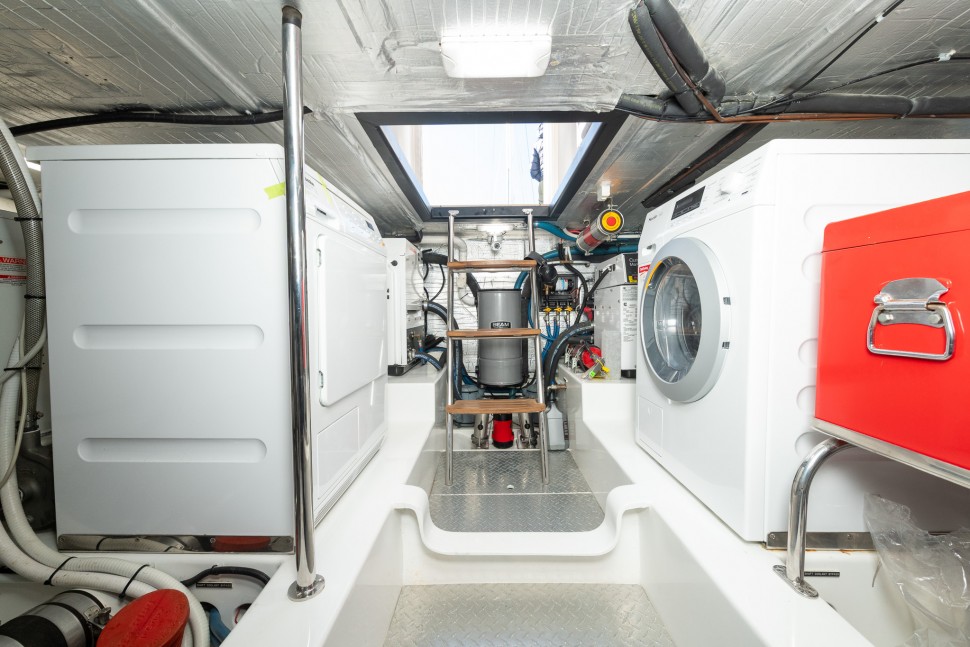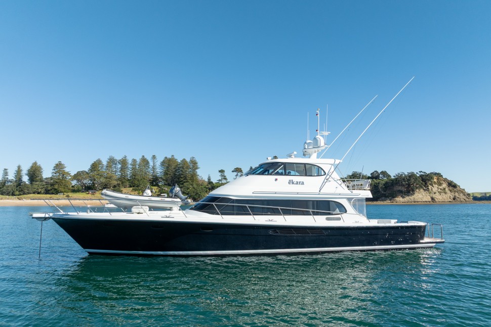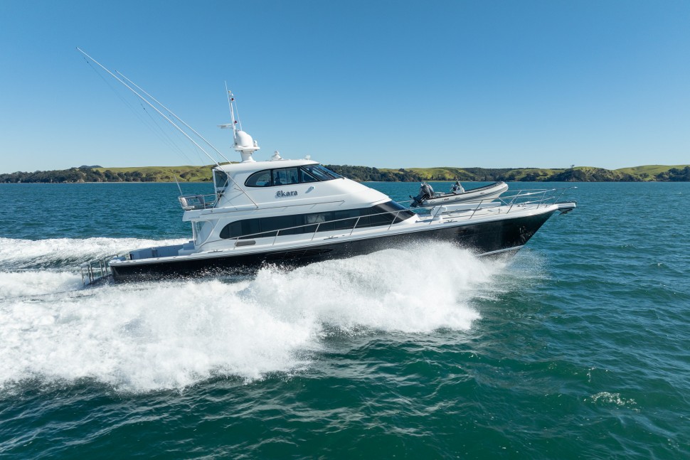 Purpose-built for long-range cruising, Ekara is fitted with oversized fuel and water tanks, twin generators, a water maker, and a fuel polishing system—giving her the range and confidence to cruise the Pacific Islands and beyond. At an efficient 11-knot offshore cruise, she offers reliability and endurance in bluewater passages.