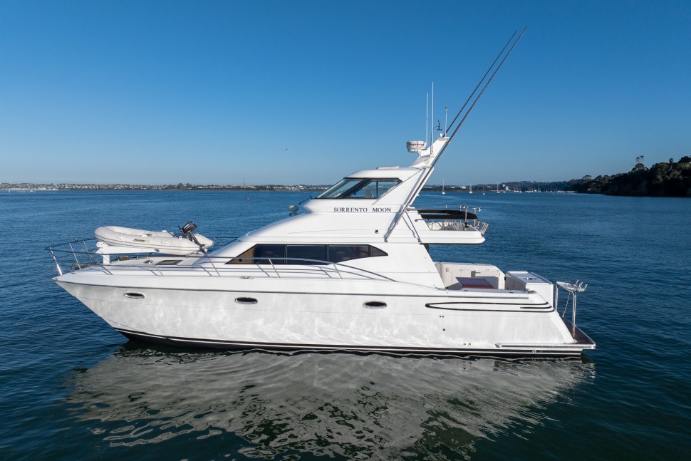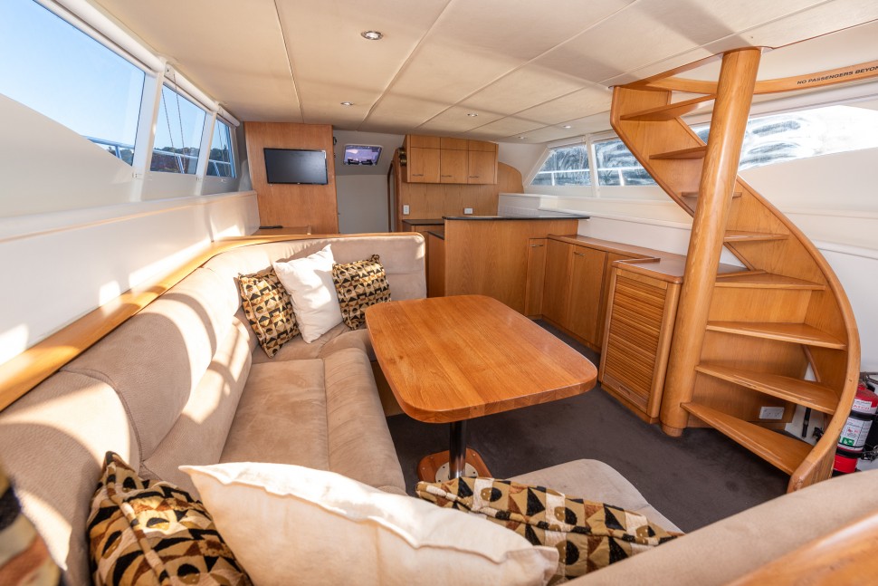 Step aboard Sorrento Moon, the 1998 Scott Robson 14m power catamaran. A well built and attractive vessel that offers stability, performance and multiple spaces across her well sized platform. Her powerhouse of twin 2010 Yanmar 370hp shaft v-drive engines have you effortlessly cruising along at 17 knots while you explore the seas. The stability of a catamaran makes her a comfortable ride and ensures all onboard are enjoying pleasurable boating.