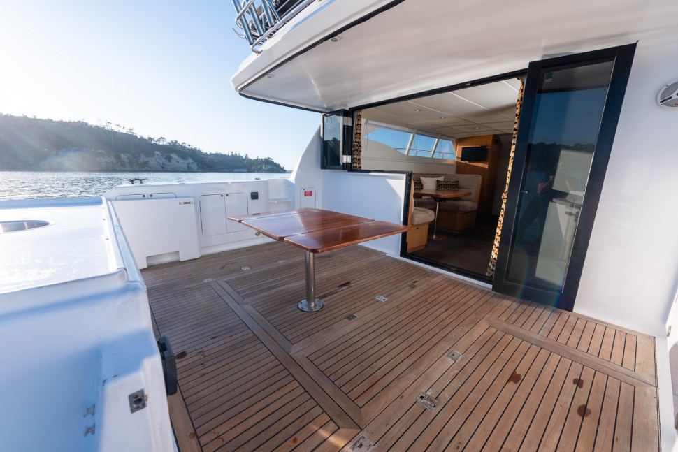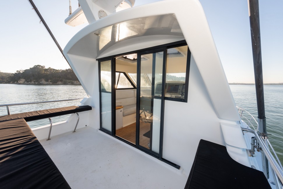 Sorrento Moon is an attractive catamaran from bow to stern and the flybridge arrangement gives a great vantage point with the aft deck when watching your spread of lures or enjoying the bay you are moored in for the evening.
