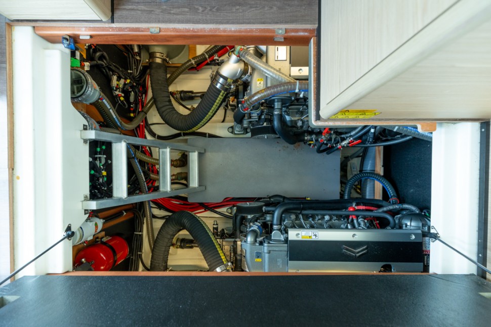 Powered by twin 320hp Yanmar diesels with low hours, shell cruise safely, comfortably & economically at 8 knots or get you home fast at 22 knots.