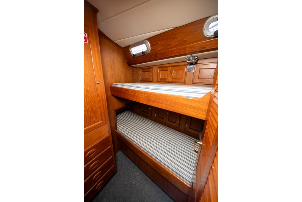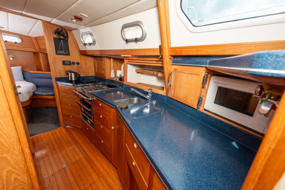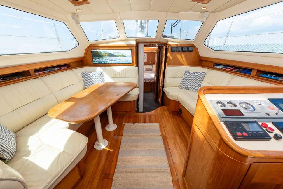 Launched in 1995 and built to the highest standards by Salthouse Boatbuilders, no expense was spared in her construction. Designed to withstand the demanding conditions of the Wellington region, she incorporates a deeper, heavier lead keel, increasing the righting moment by 14% for enhanced stability and performance in heavy seas.