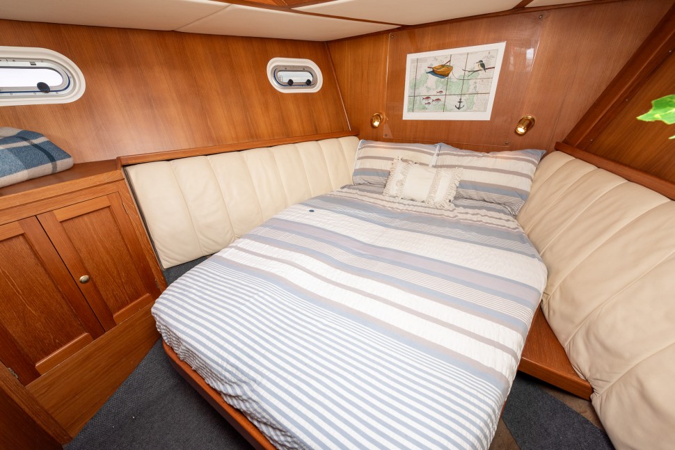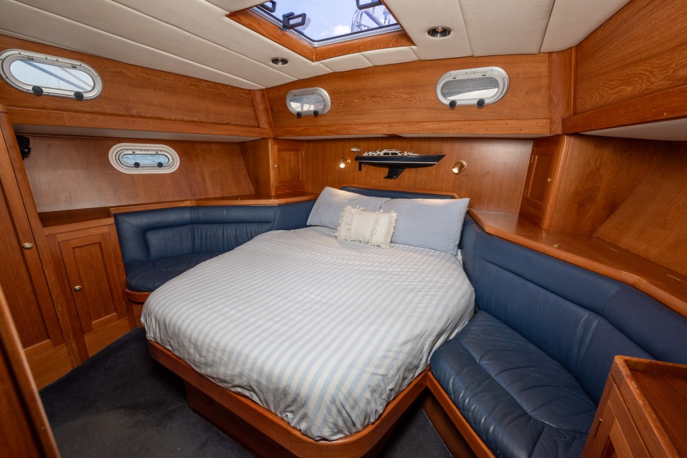 What truly sets Indulgence apart is her shallow saloon floor, which elevates the living spaces and floods the pilothouse with natural light — creating a bright, open atmosphere that’s perfectly suited for extended cruising and offshore adventures.